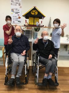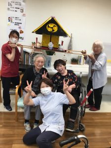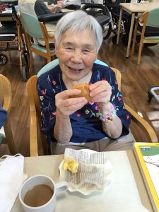 神輿は「神様の乗り物」とされており、祭りの際には神社から神様の霊が神輿に移り、町を練り歩くことで地域全体にご利益をもたらすといわれています。 残念ながら、ご利用者様がいらっしゃる時間帯に神輿は間に合いませんでしたが、獅子舞はご覧いただくことができ、皆様とても喜ばれていました。 また、喫茶も開催し、“今川焼”をお出ししたところ、「美味しい~」と笑顔でお言葉をいただきました。
